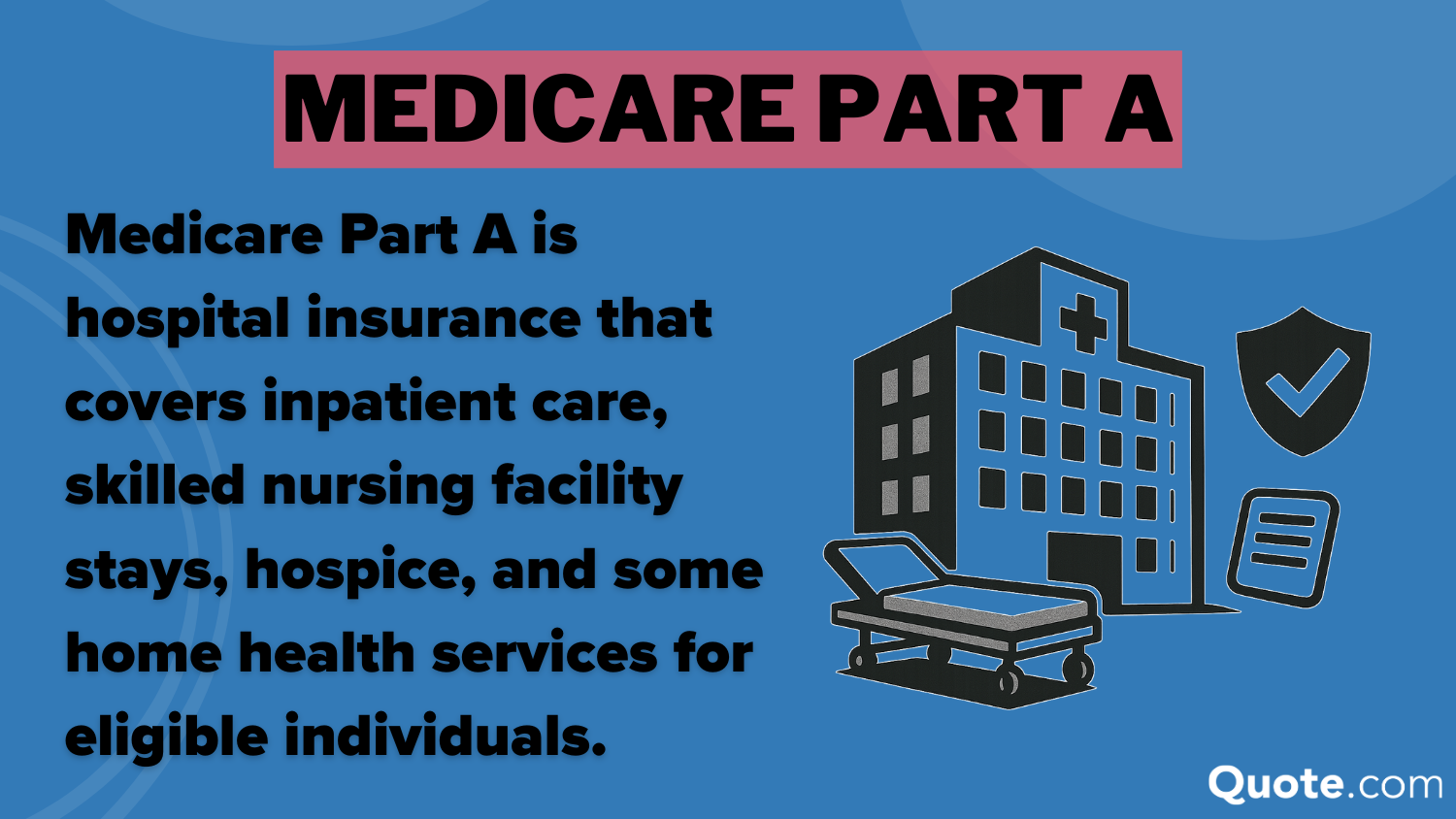What is Medicare Part A? Part A is hospital insurance that pays for hospital stays and nursing home or hospice care. What is Medicare Part B? This part if your policy covers routine medical services and equipment.